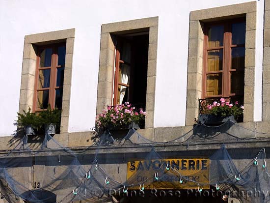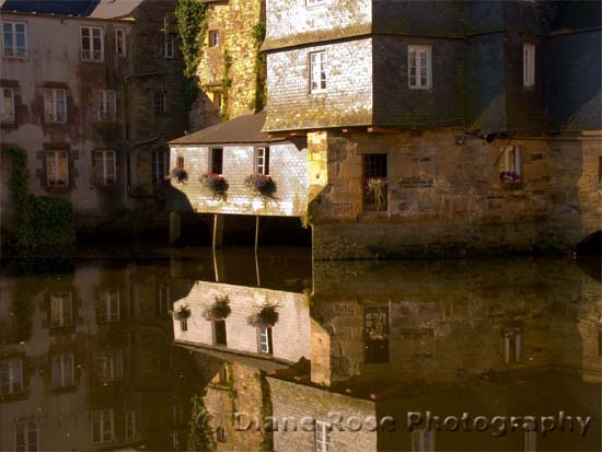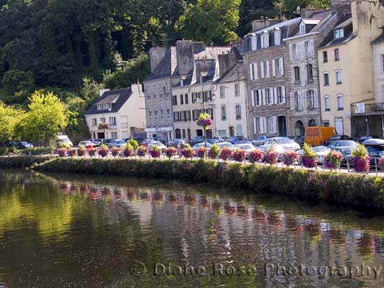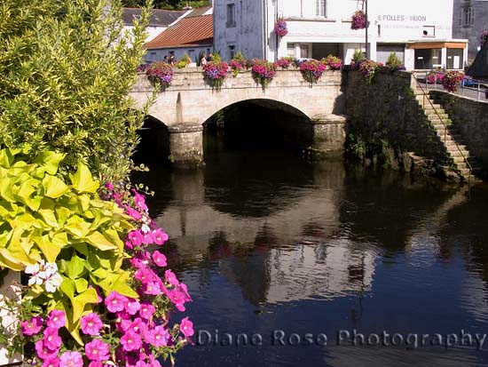 Flowers reflecting in river. Quimperlé, Brittany. |