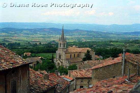Tile rooftops and village church steeple, Baume de Venice, Provence. | |