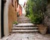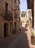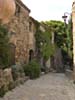 Cobblestone lane and medieval buildings. Castelnou, France. |